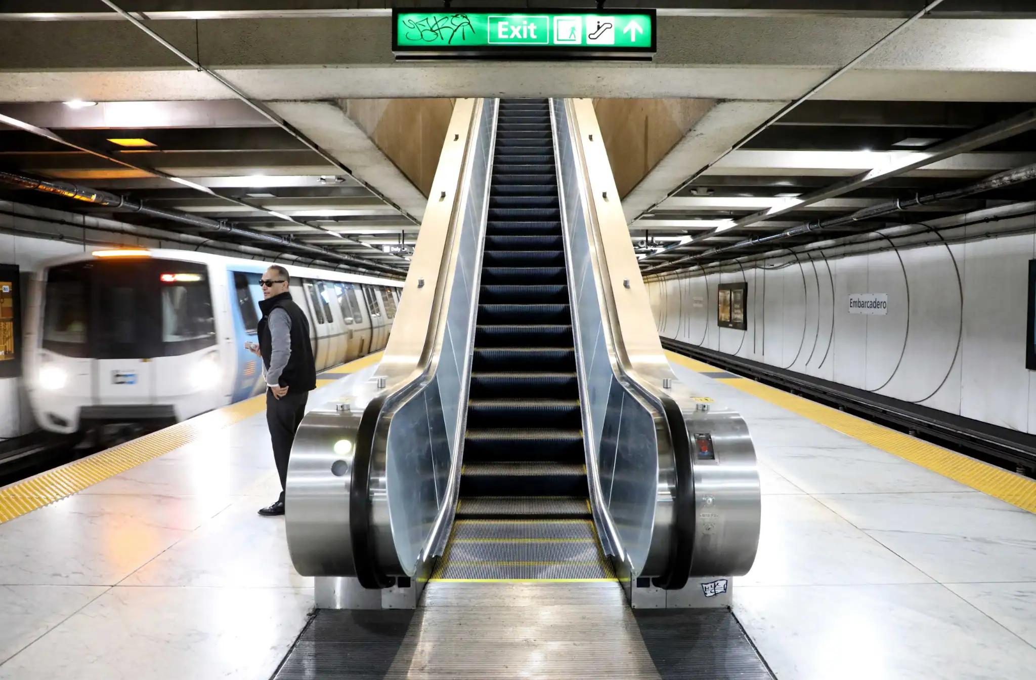 View allOn March 14, 2019, the BART Board of Directors approved a $96.5 million contract for the Market Street Escalators Renovation Project, the largest escalator replacement contract in BART history. The project will replace and install 41 escalators at the Embarcadero, Montgomery, Powell, and Civic Center stations. Of these, 22 escalators will connect the street to the concourse, while 18 will connect the concourse to platforms. One street-level escalator at Civic Center will also be relocated to improve access near the Orpheum Theatre.